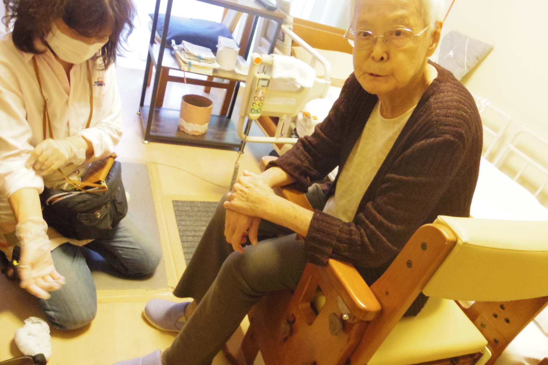 本日は、入居者様が新しい室内靴を選んでいる際のご様子です。