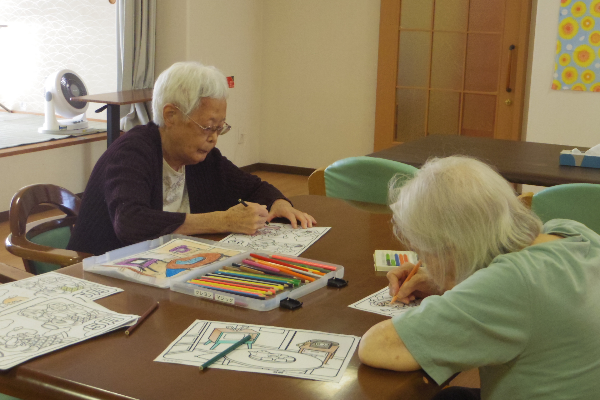 本日は、皆さまと一緒に塗り絵を行ないました♪