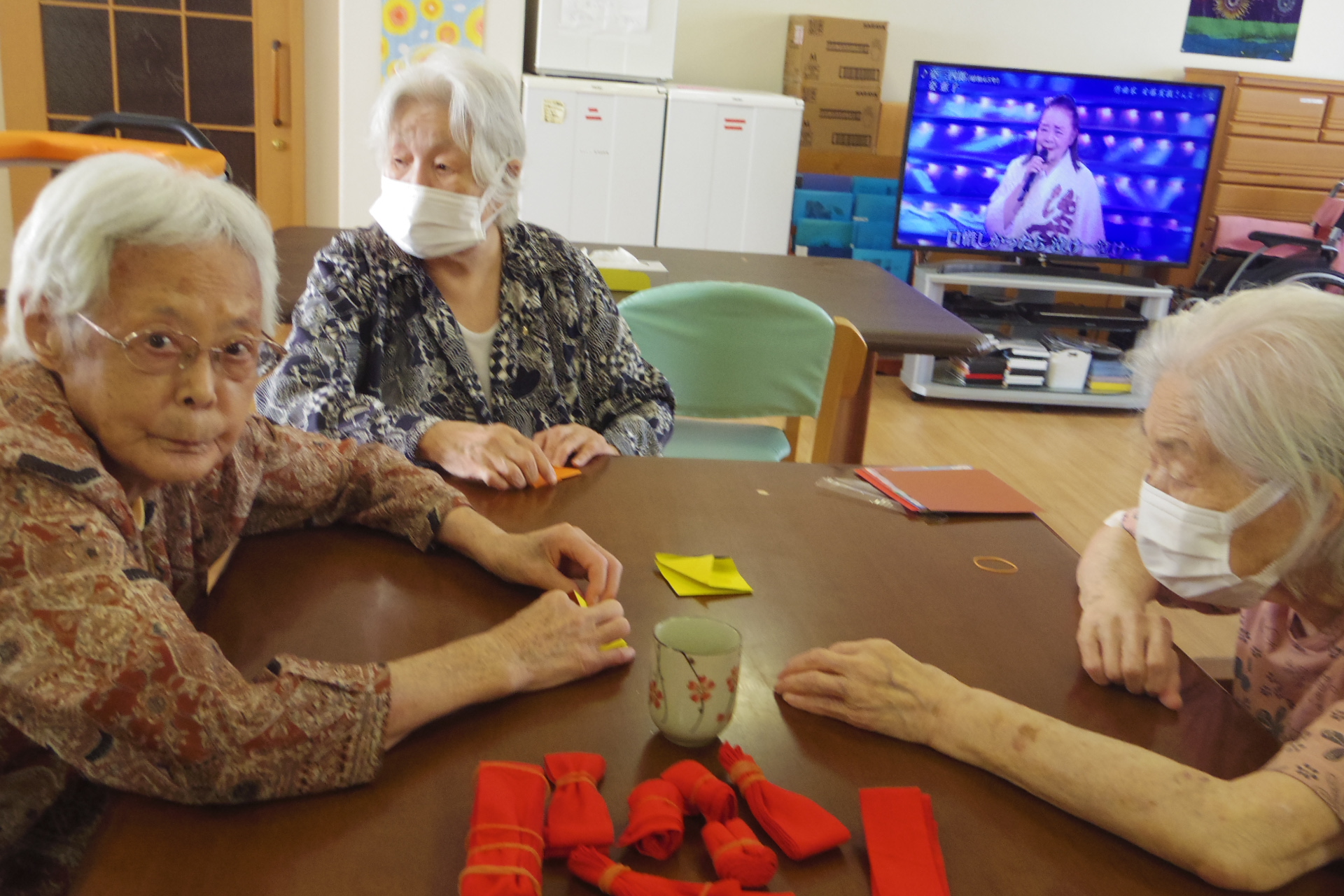 今日は、2階の皆さまと一緒に折り紙や畳みものを行ないました。