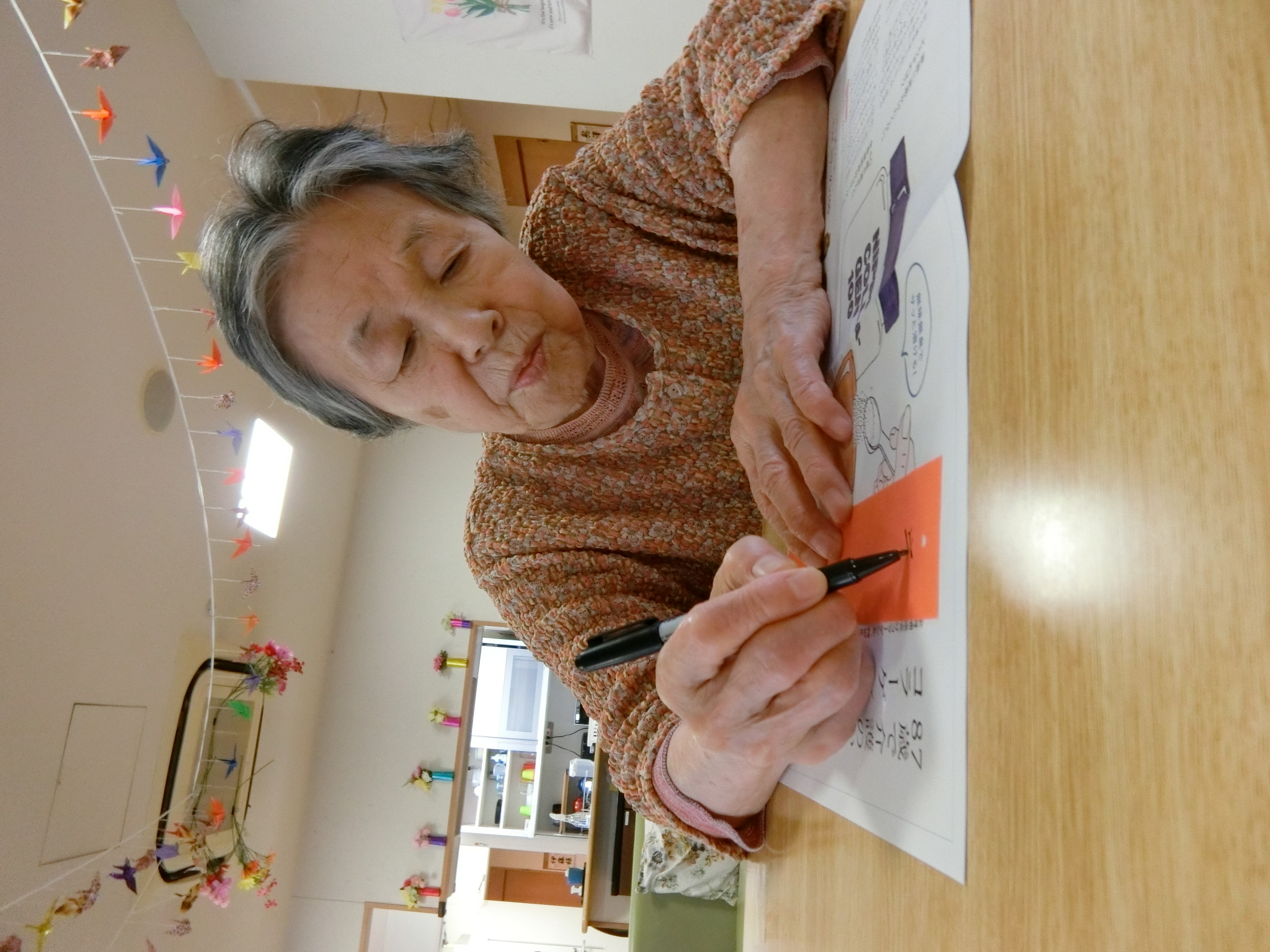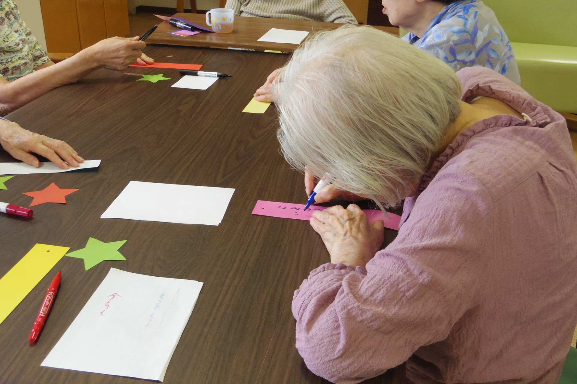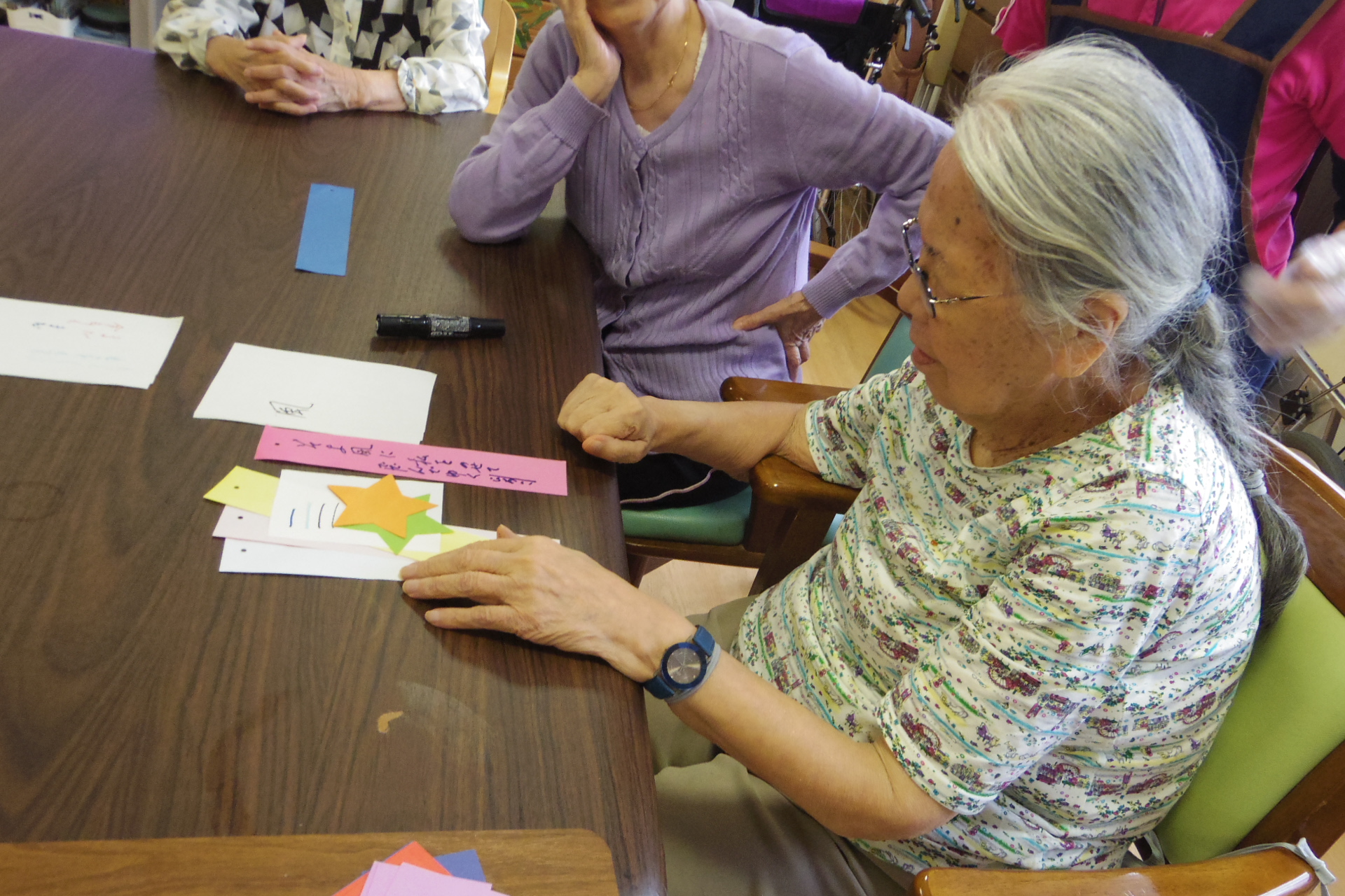 さっそくいつもの顔ぶれが戻ったところで7月の七夕飾りをみんなで作ります。