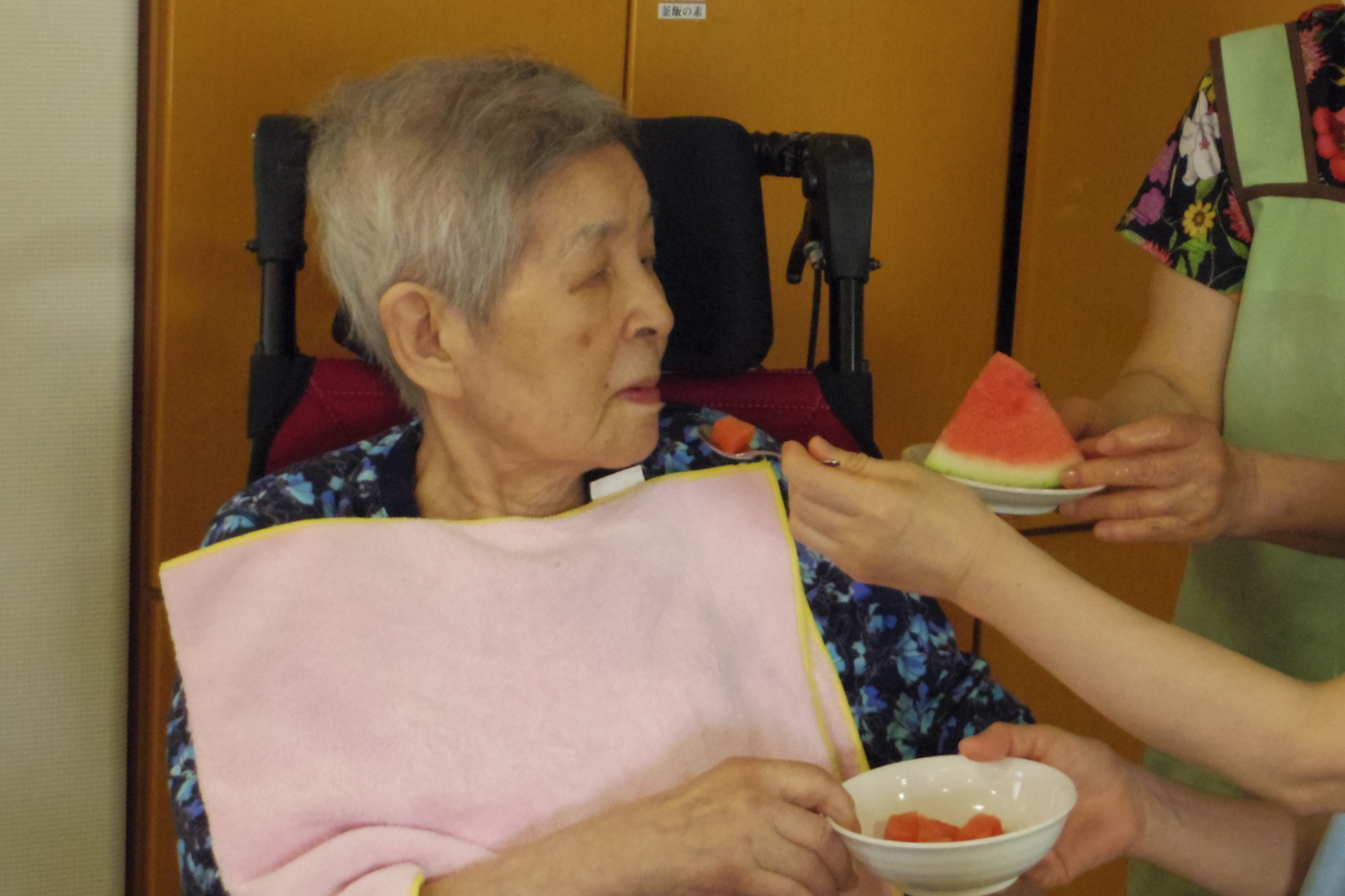 以前ご家族の方から差し入れして頂いた立派なスイカ