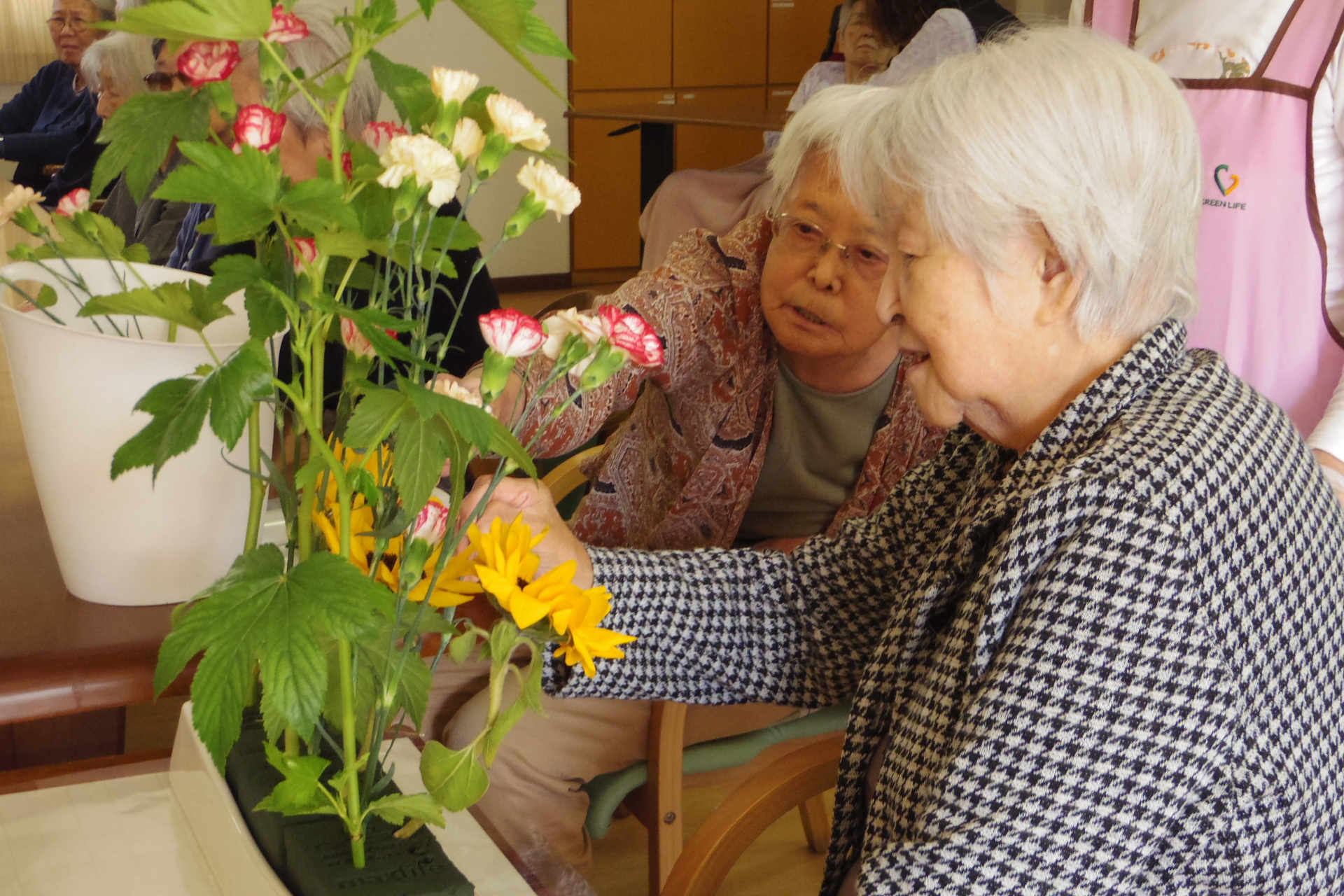 2階フロアで行ないました生け花会のご様子をお送りいたします。
