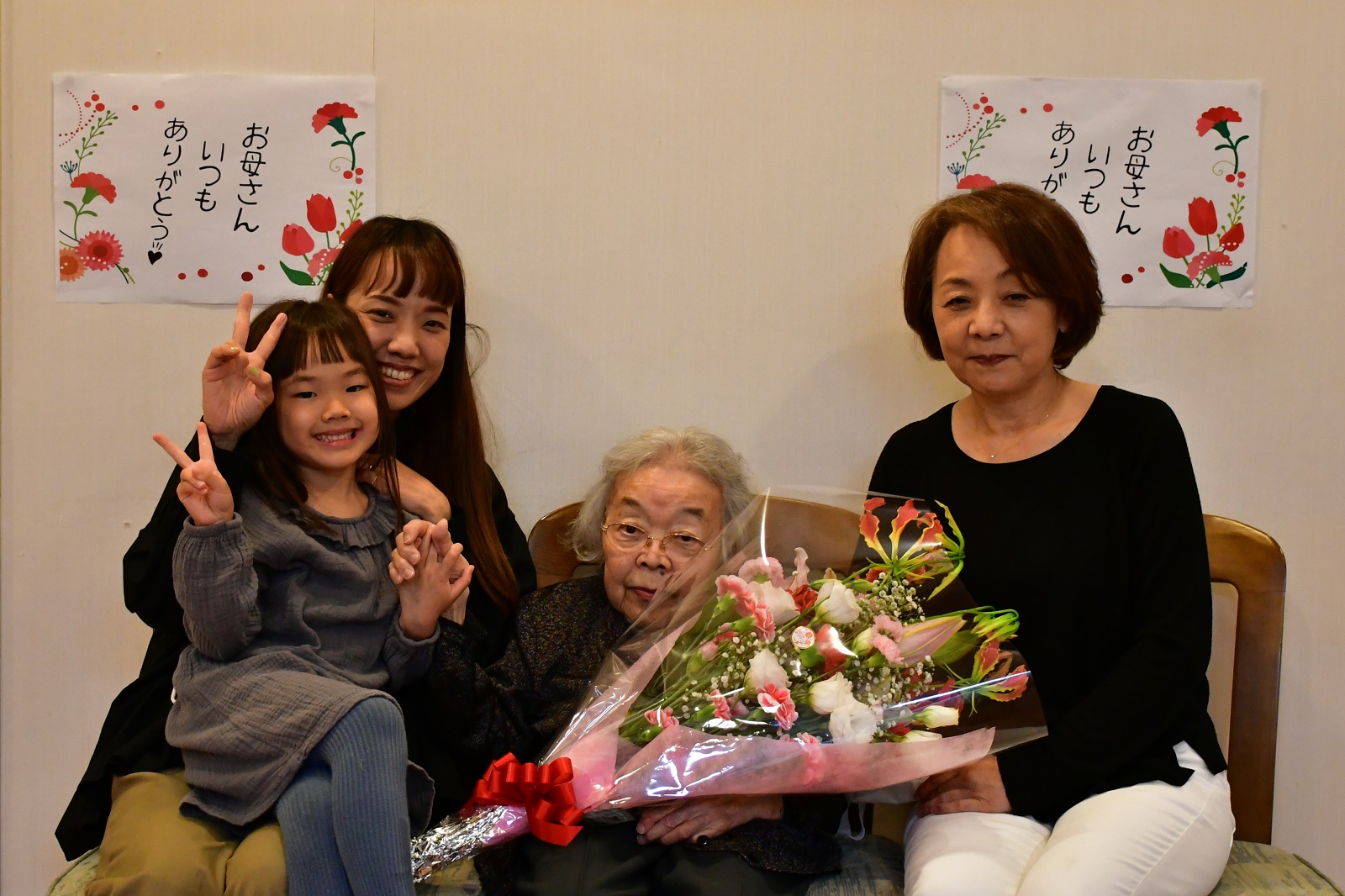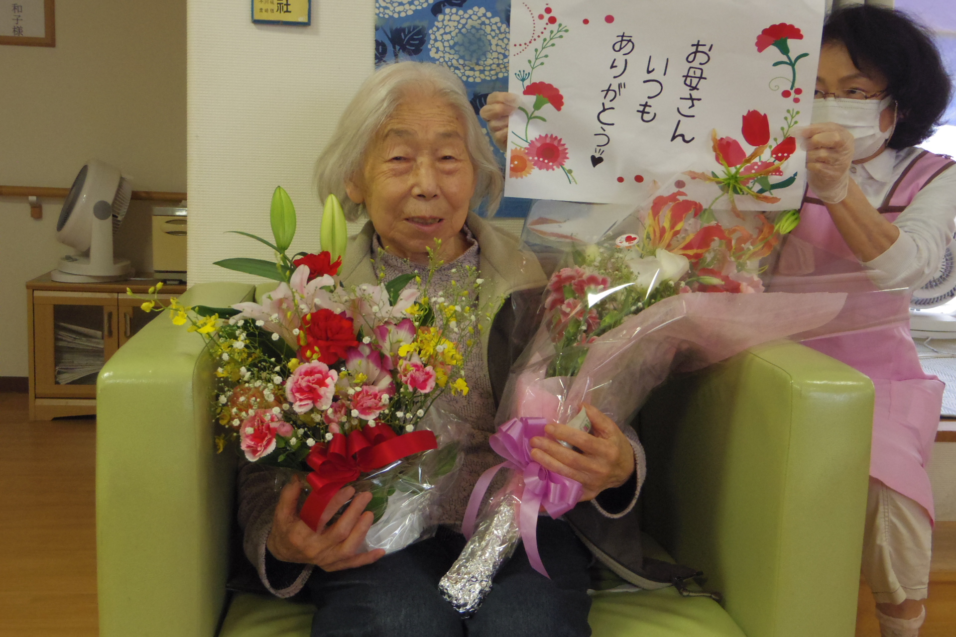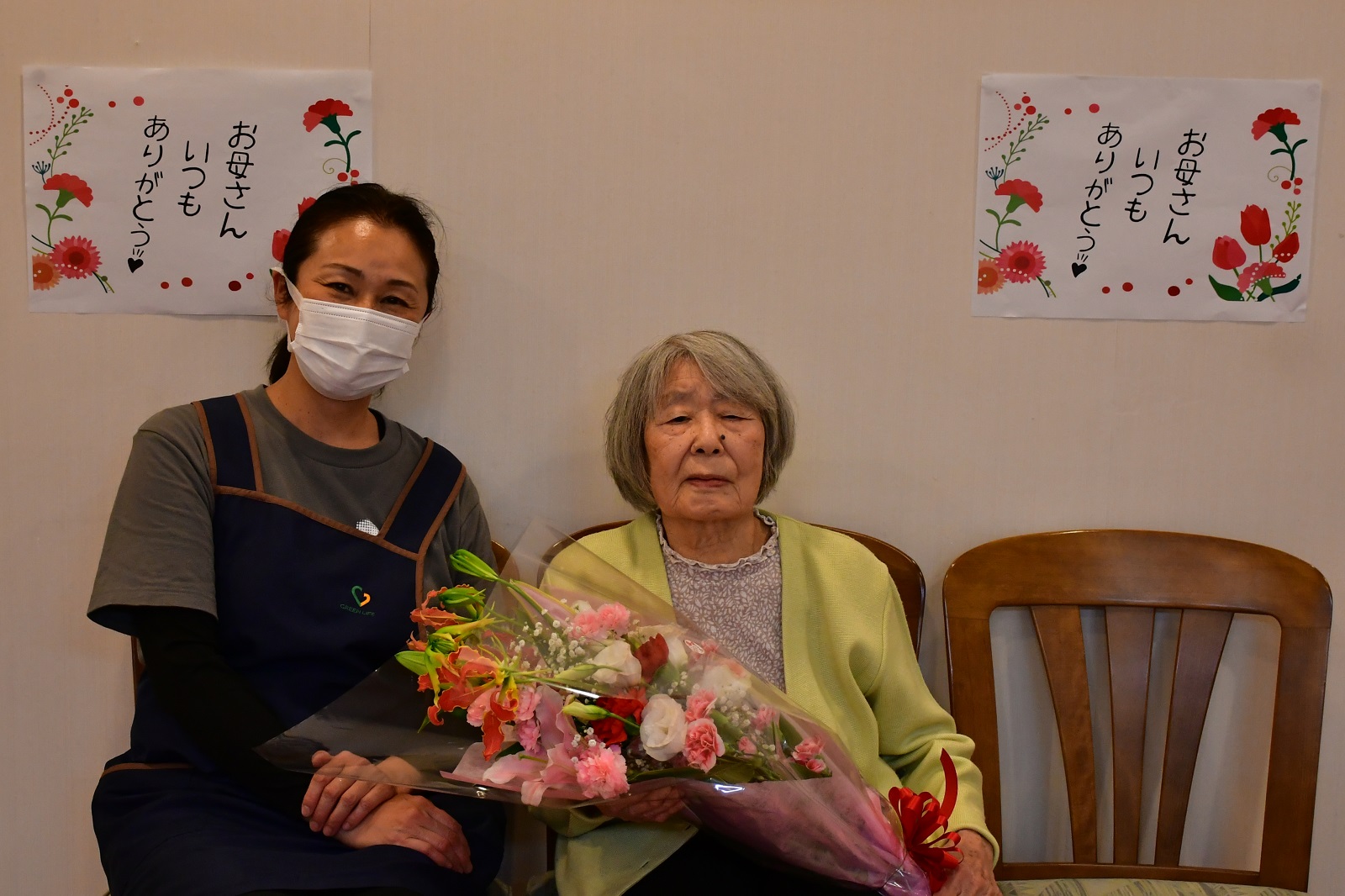 母の日ということで素敵なお花と一緒に記念写真を撮りました!