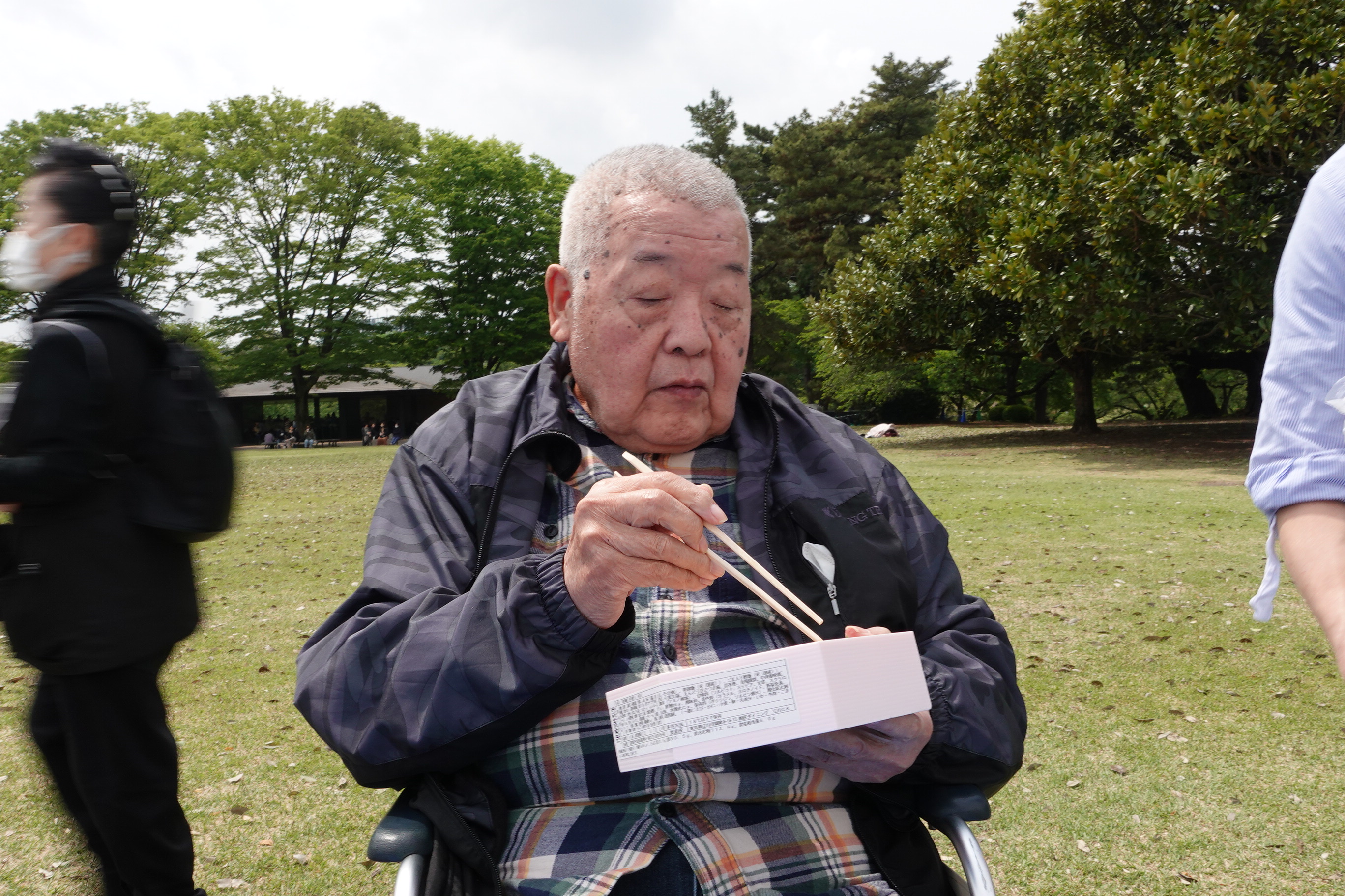 食べながらも笑顔がこぼれます!これこそがピクニックの醍醐味!