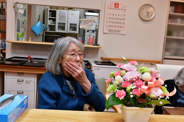 昨日、誕生日会をされた方に届いたプレゼントのお花を飾りました!