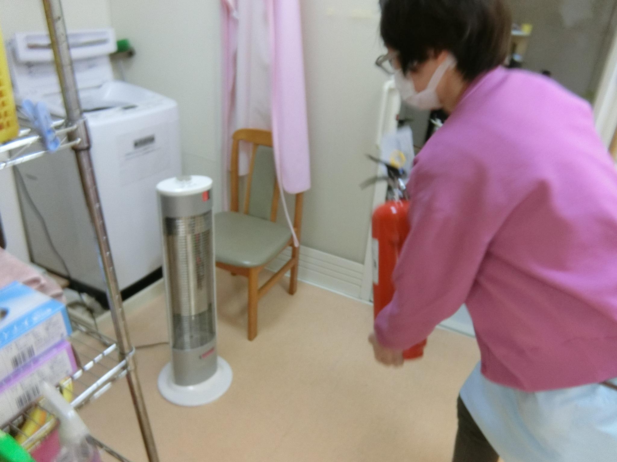 職員同士でそれぞれ、消火、通報、排煙、避難誘導など役割を決めて