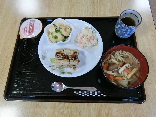 そうめん、かまぼこ、具だくさんの野菜が入った汁物です。