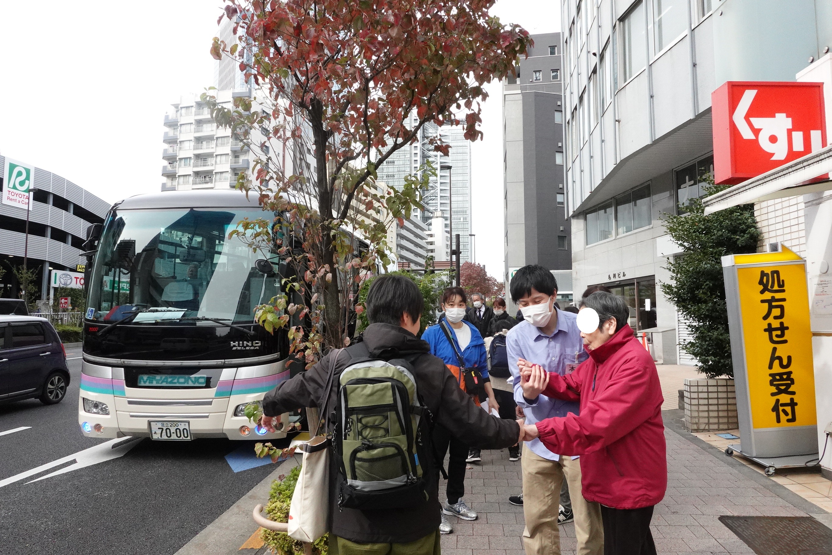 まずは、施設から出発してバスの乗降場所まで向かいます!