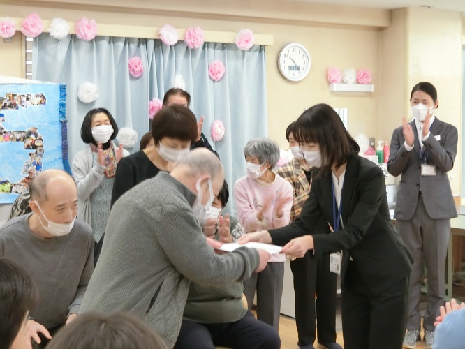 長年の通所を称えられ、表彰状の授与もいただきました!