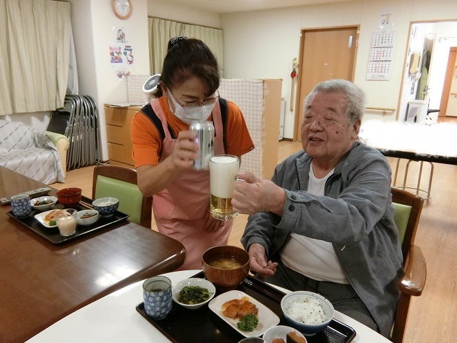 今日も、大好きなビールを片手に「カンパーイ!!」