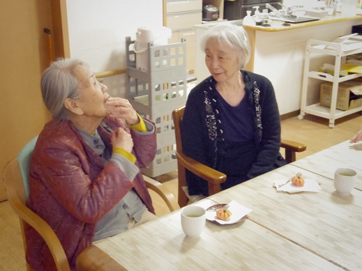 本日は目で楽しむ紅葉として色んな色彩の和菓子を用意しておやつタイム!