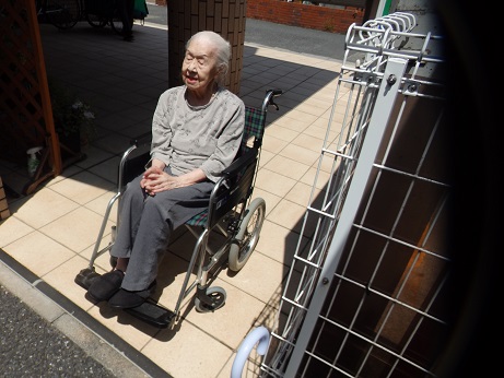 と、日光浴もかねて駐輪場まで。