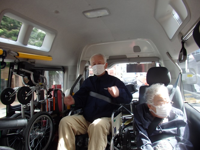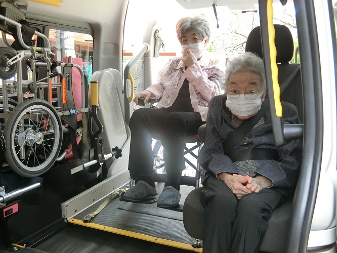 さぁ、バスと介護タクシーの2台に分かれて