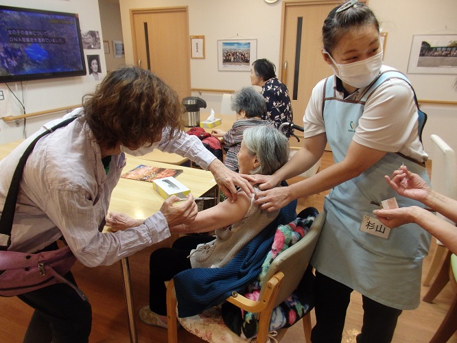 本日は、入居者様全員のインフルエンザ予防接種を