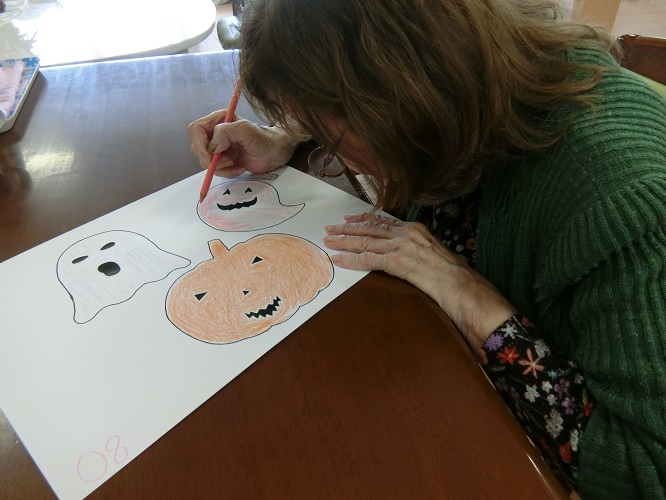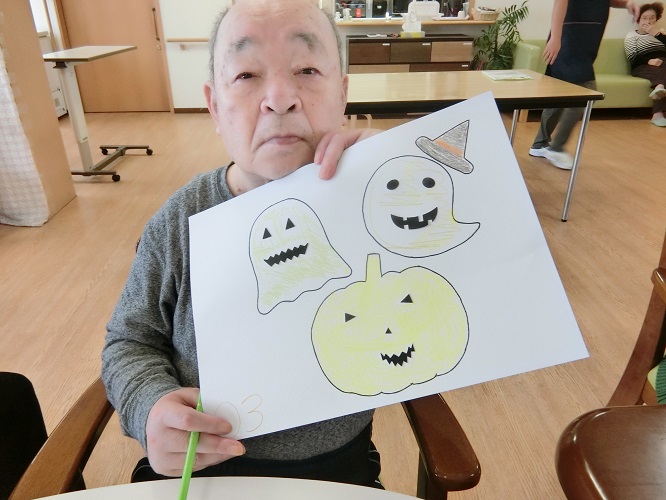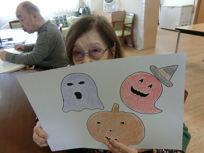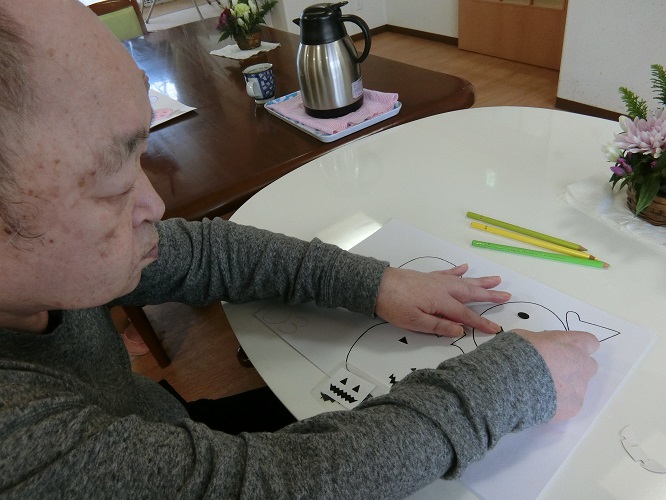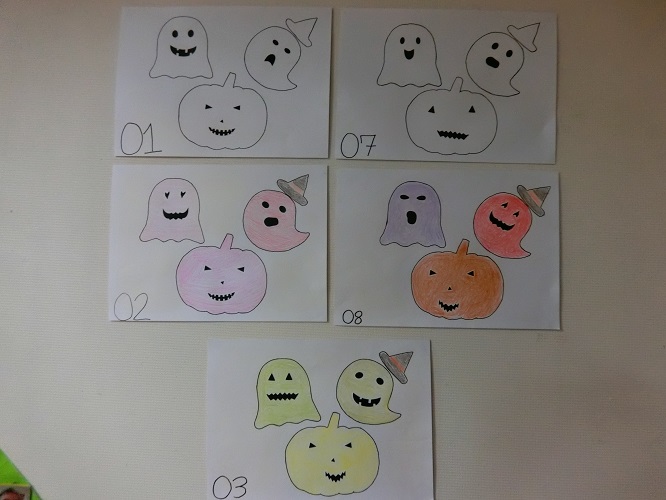 皆さんには塗り絵を塗って、壁にペタペタと貼り付けて頂きました。