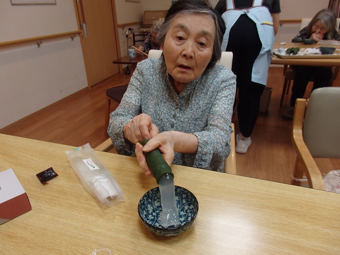竹筒に入ったくずきりを皆さんで召し上がって頂きました♪