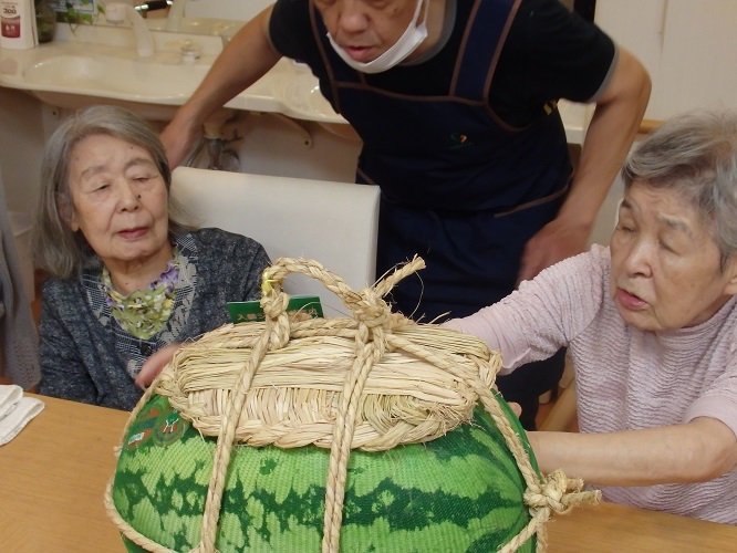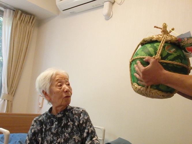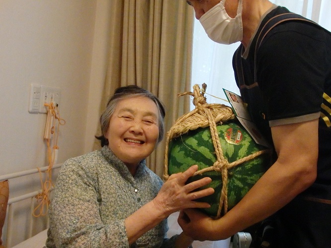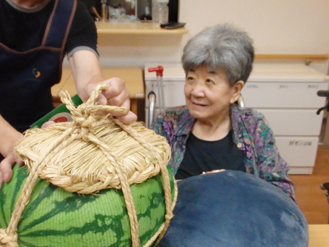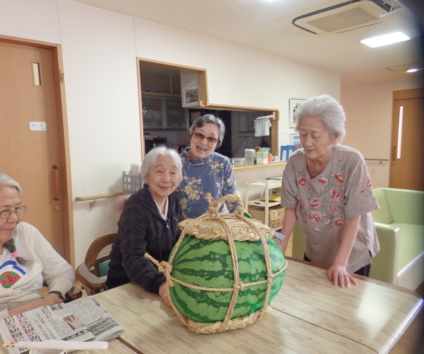 早速、入居者様もスイカとご対面!!