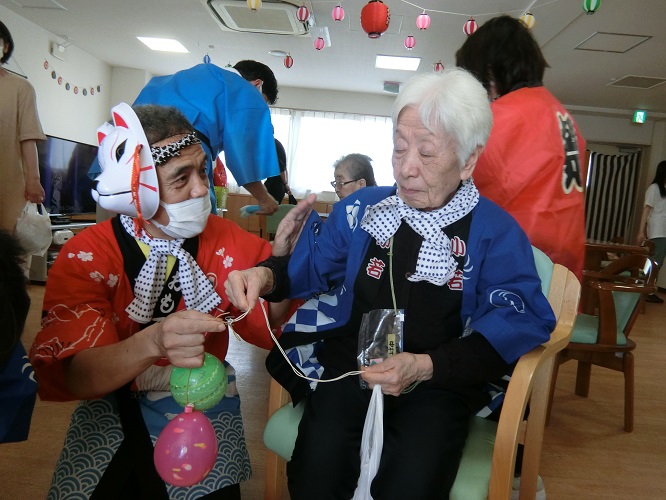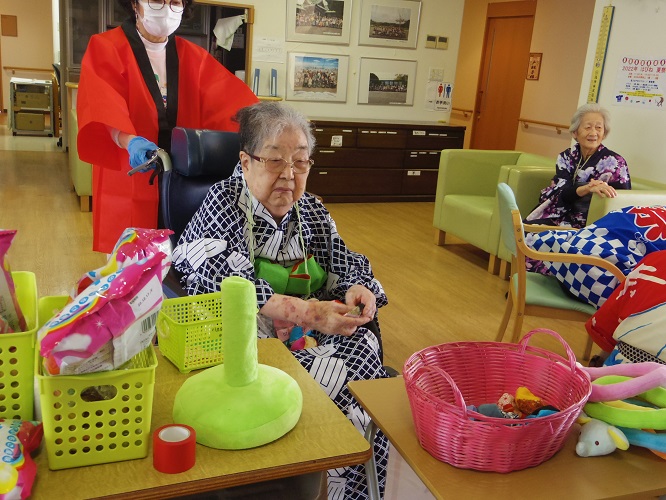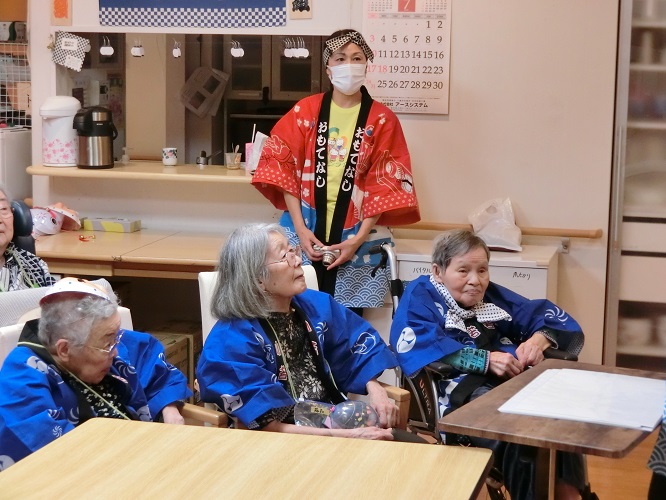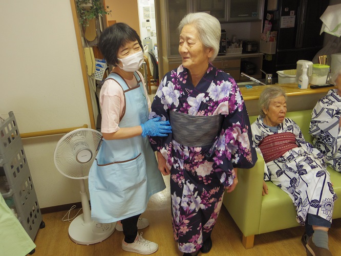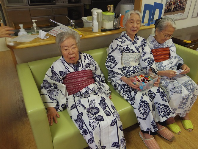 2階の入居者様は、浴衣の着付けを行いお祭りをお楽しみ頂きました♪
