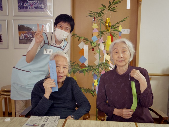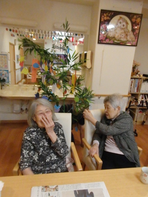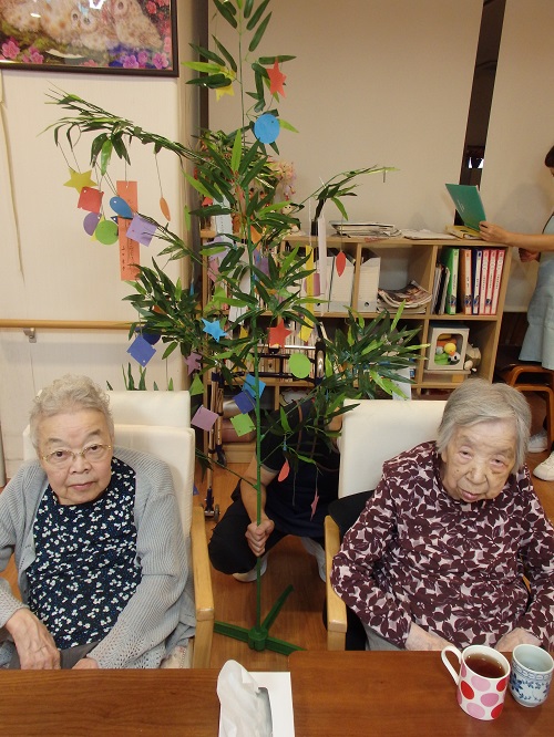 笹や短冊、七夕のお菓子と共にお祝いを行いました♪