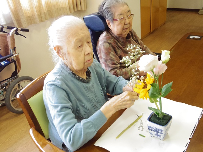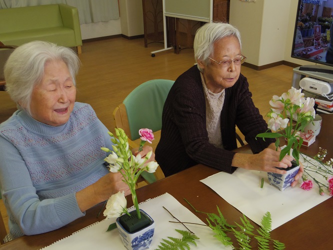 本日は、2階より生け花会のご様子です。
