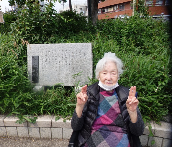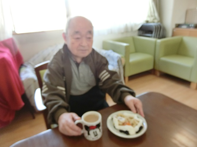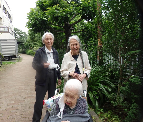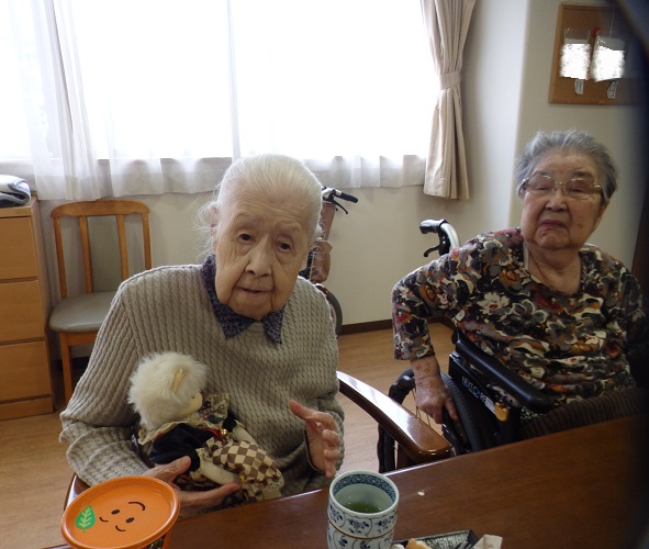 入居者様と2人で玄関口に出て日光浴を行いました♪