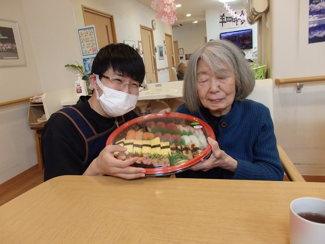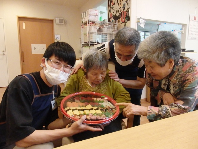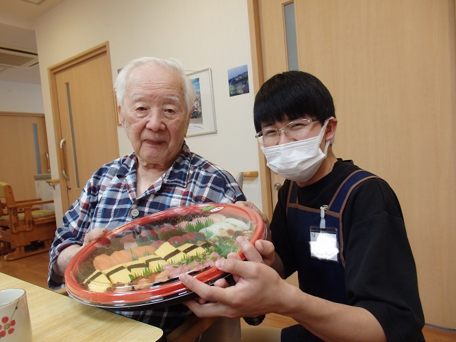 お昼にはご本人のお好きなお寿司をみんなで召し上がり