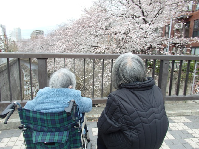 毎日!散るまで!入居者様には神田川沿いの桜を楽しんでいただきます♪