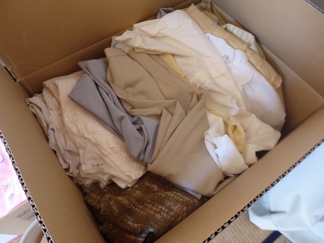 娘様からお母様に春の衣類など一式、2箱の贈り物です。