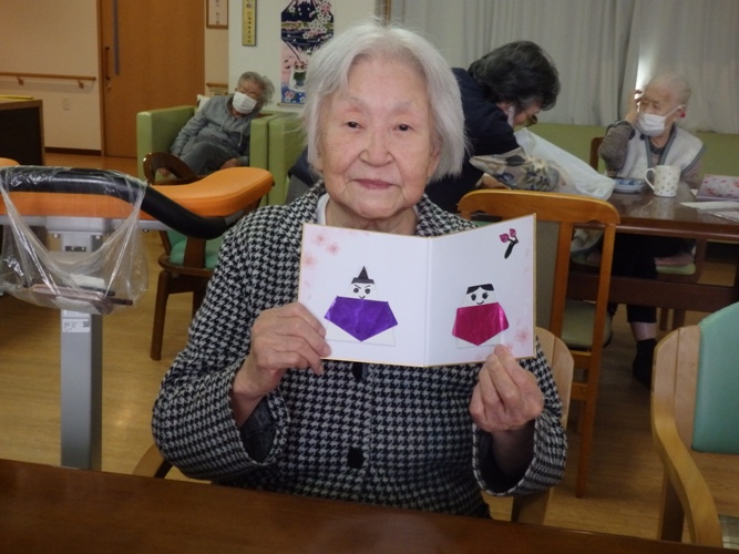 みんなでペタペタとカードに貼った後色んなシールをつけて頂きました。