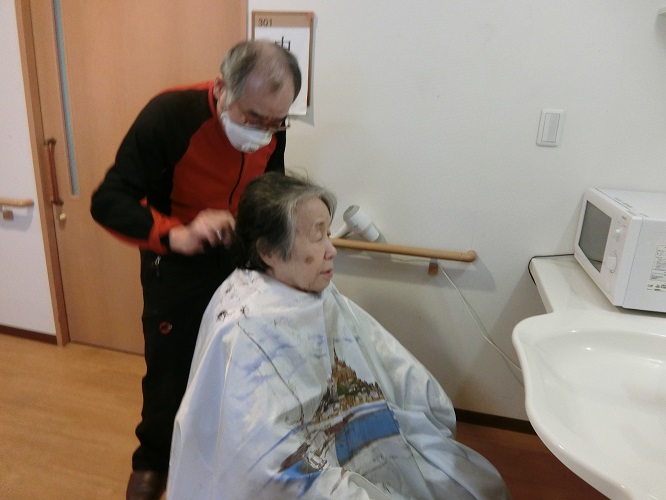 本日は、2カ月に1回の訪問ヘアカットの日でした。