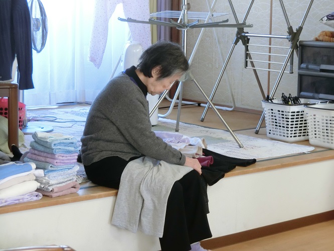 食器を洗う人、お茶を汲む人、洗濯物を畳む人