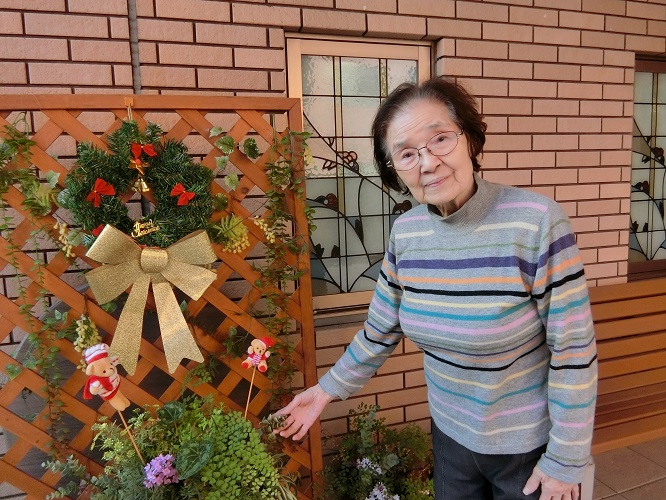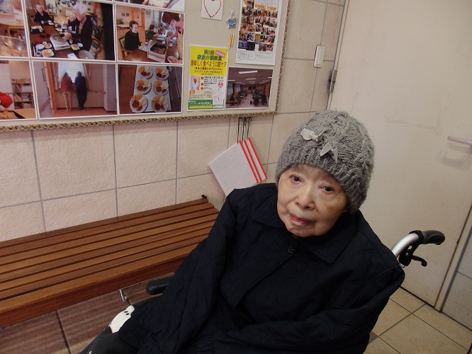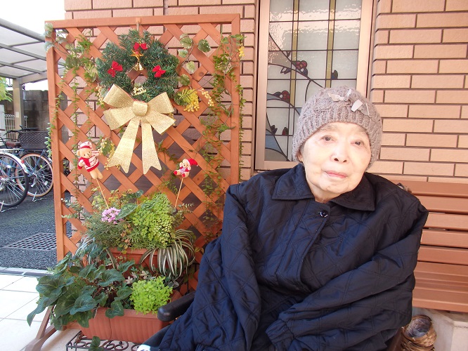 こんな日には、入居者様とご一緒に玄関前のベンチに出て