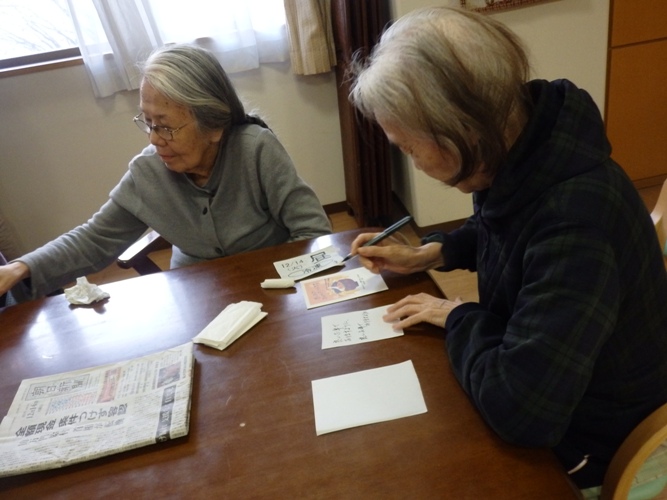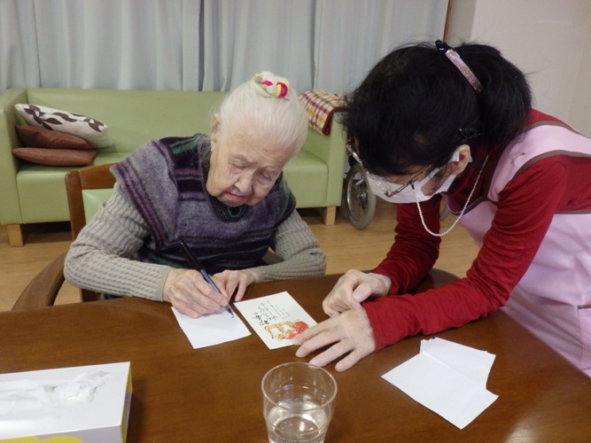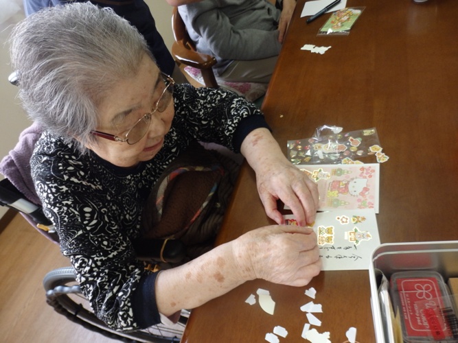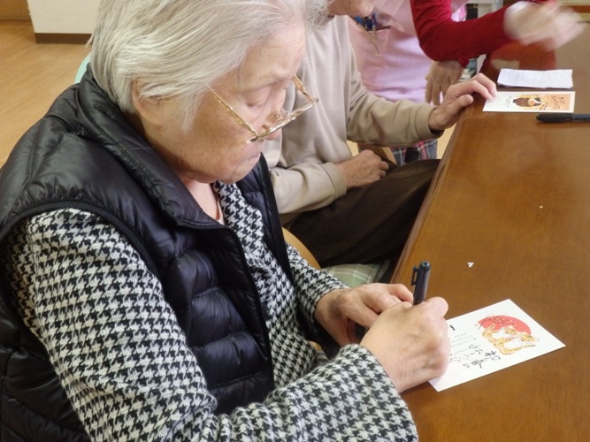 今日はみんなでご家族にむけて年賀状を作りをしました。