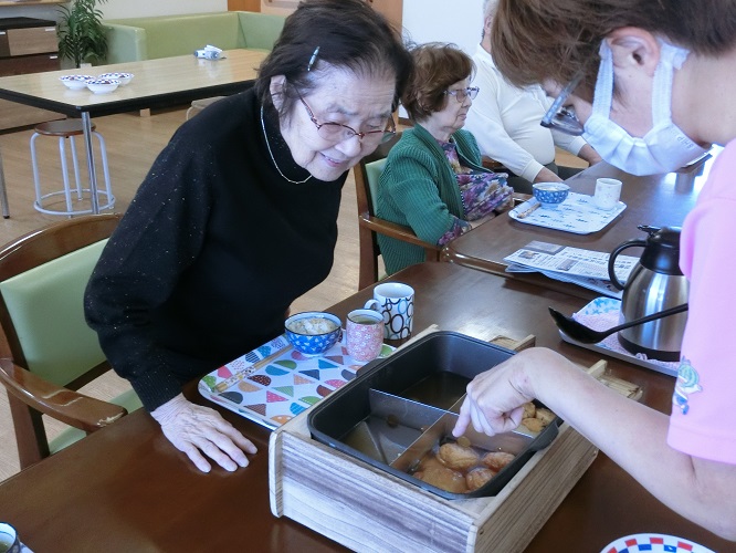 昼食は皆さまで、あつあつのおでんを頂きました^^