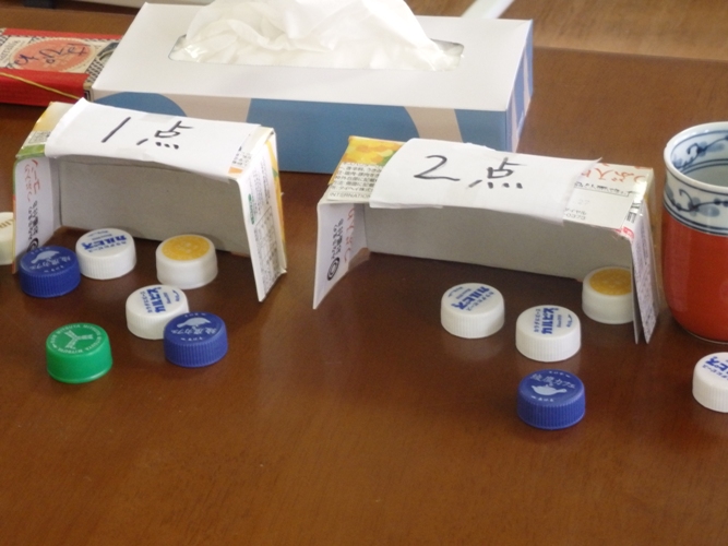 開いたスープの箱とペットボトルの蓋を使ってちょっと新しい遊びを考えてみました。