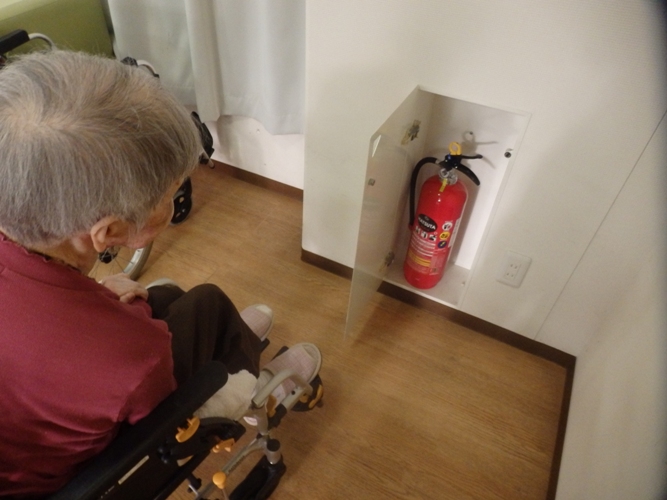 今日は入居者様と一緒にフロアの防災設備を確認してみました。