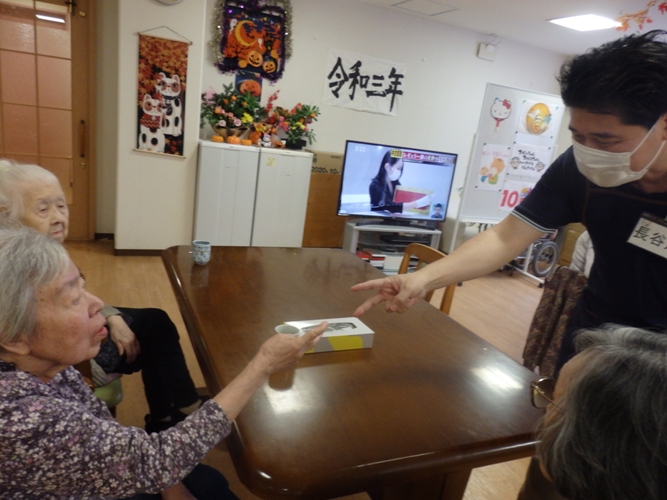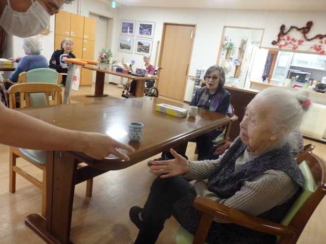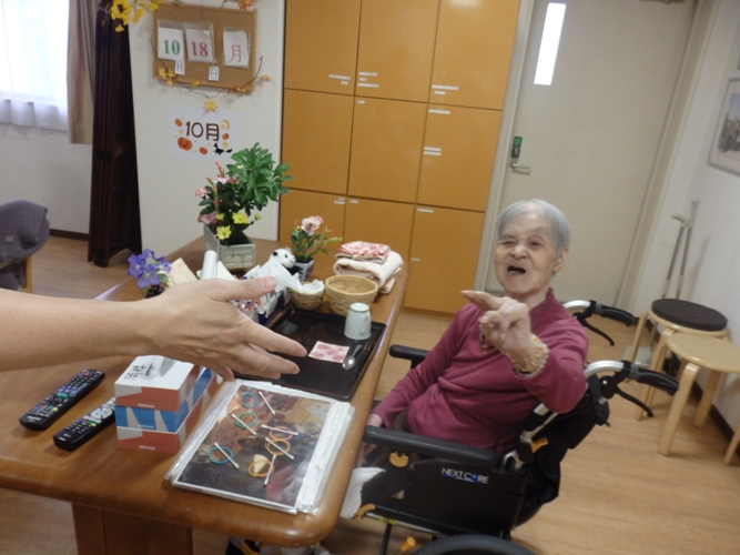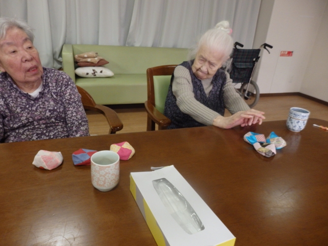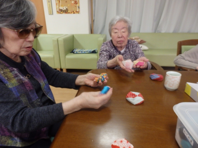 今日は入居者様に先生になって頂いてお手玉教室開催です!