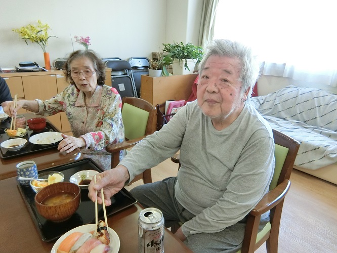 お昼は出前を取りまして皆様でお寿司パーティを行いました♪