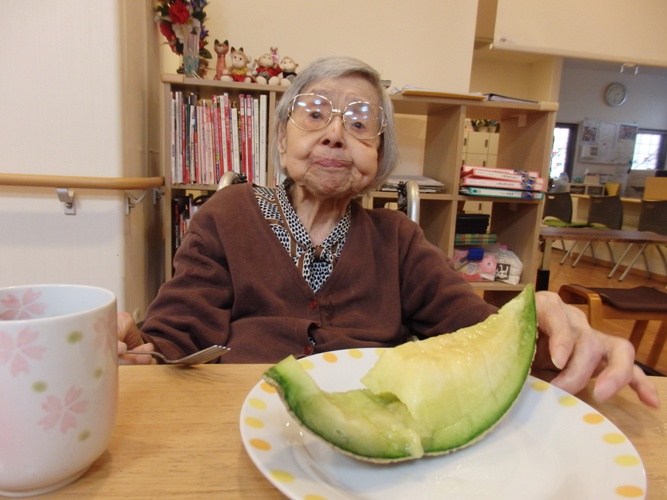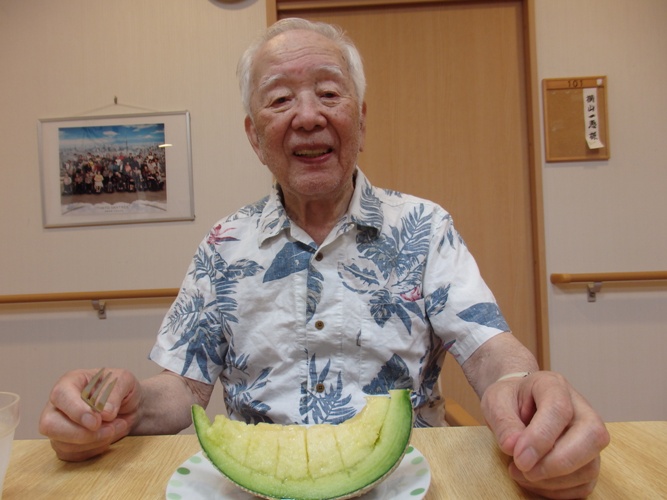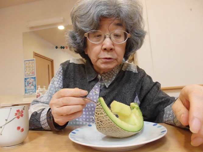 本日は、ご家族の方から頂いたメロンを