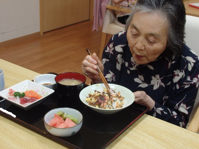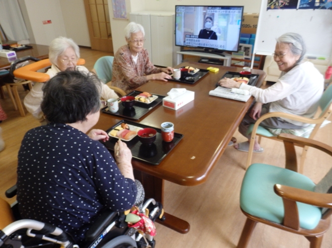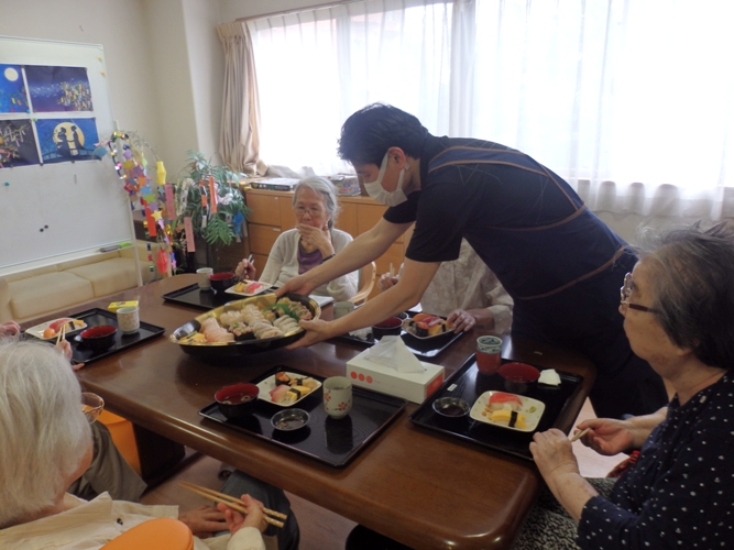 願いを込めながら今日のお昼にはお寿司をみんなで召し上がりました。