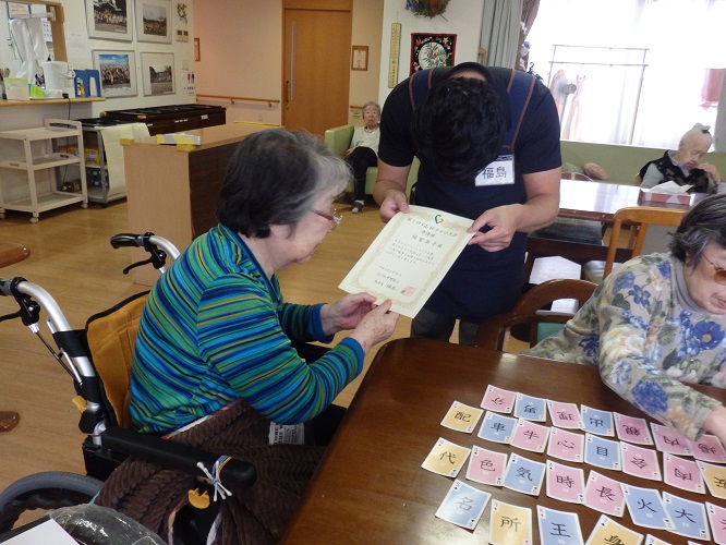 準優勝を果たしました入居者様に表彰状が届きました♪
