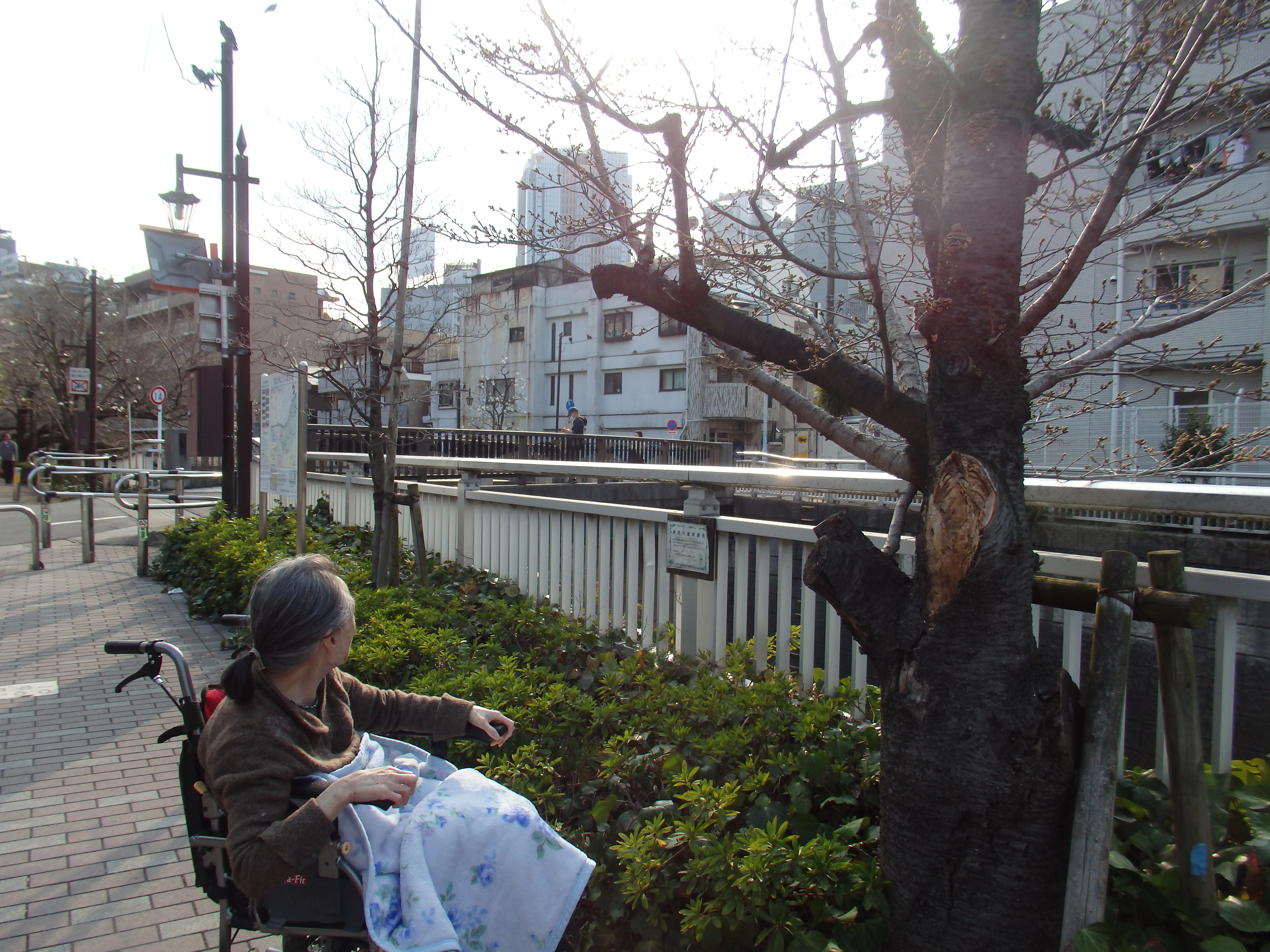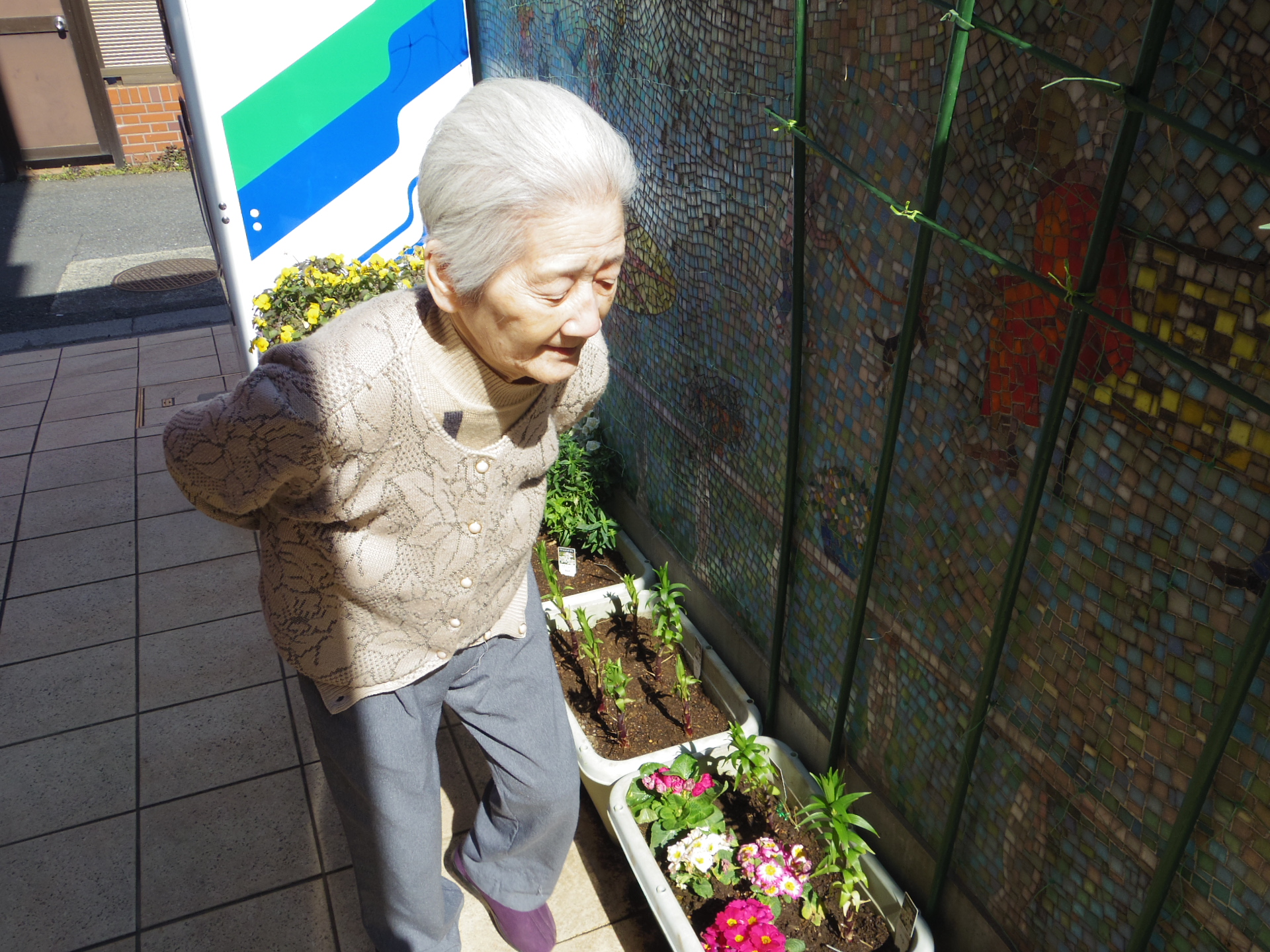 入居者様と一緒に玄関先へ出て、春の兆しを探しに行きました♪