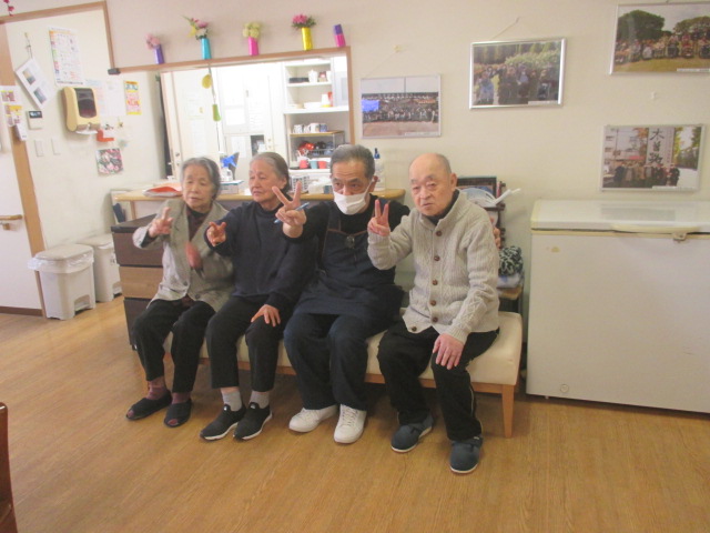 入居者様とスタッフで同じソファに座られてみんなで記念撮影v