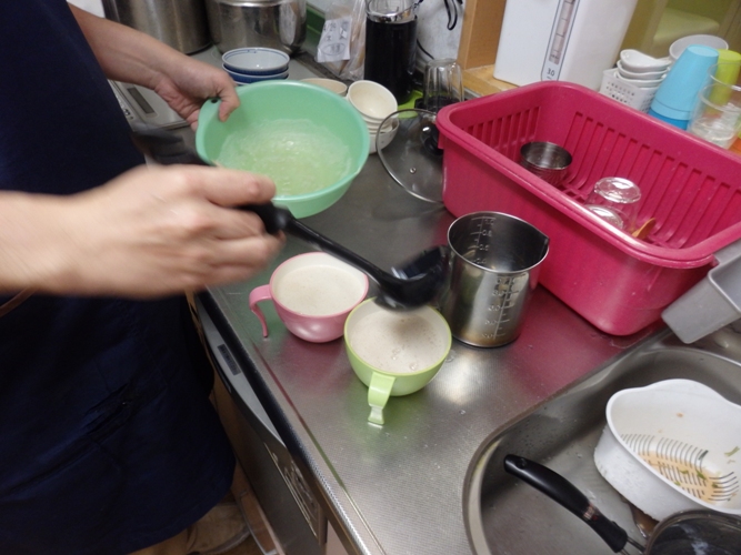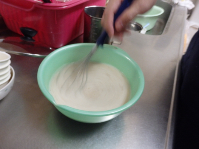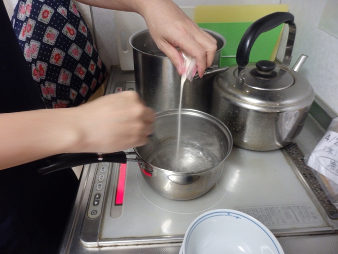 今日は最近水分がとりにくくなってしまった入居者様の為の寒天ゼリー作りです。
