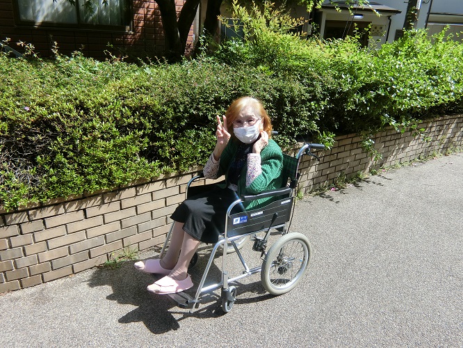 感染対策を行い、お散歩好きな入居者様、数名をご案内して