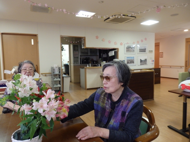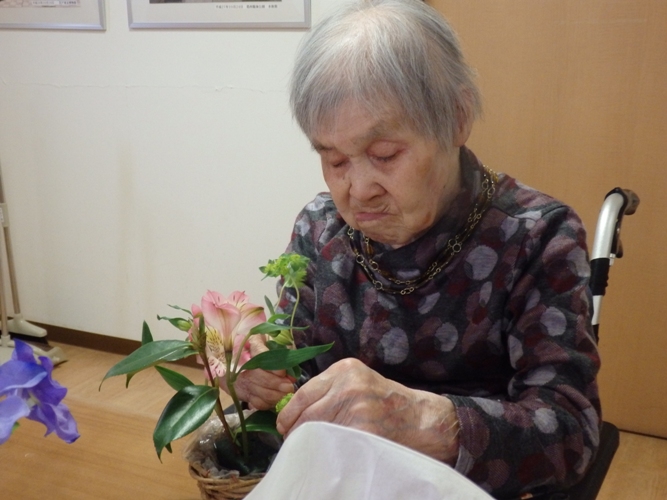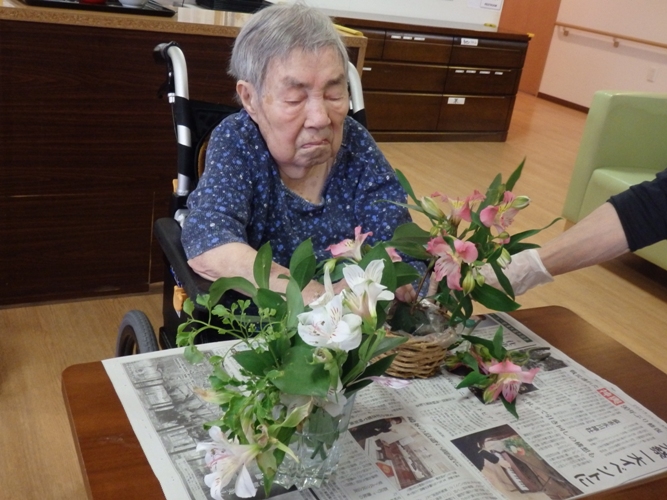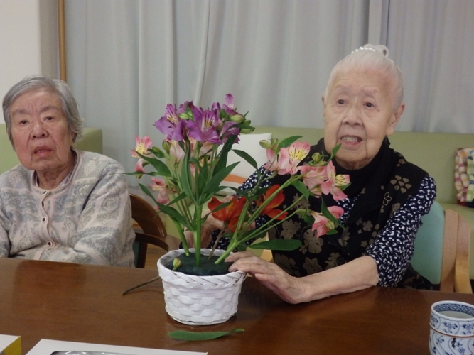 こちらで用意させていただいたお花を入居者様に活けていただきます。