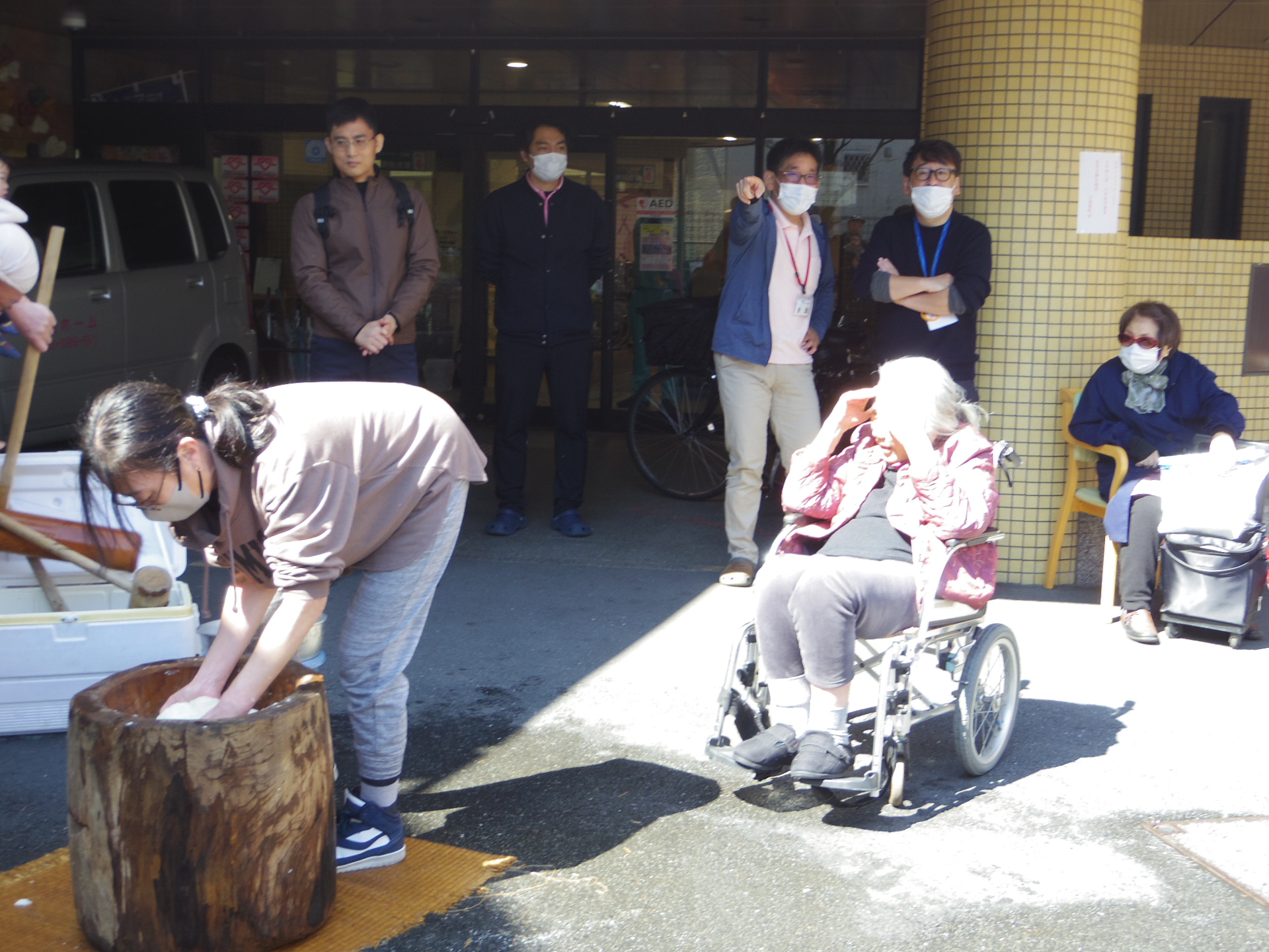 入居者様もご一緒に餅つきのご様子を楽しまれて