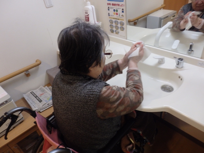 洗面台の前にいくともう当たり前のように自然と手を伸ばして下さいます。