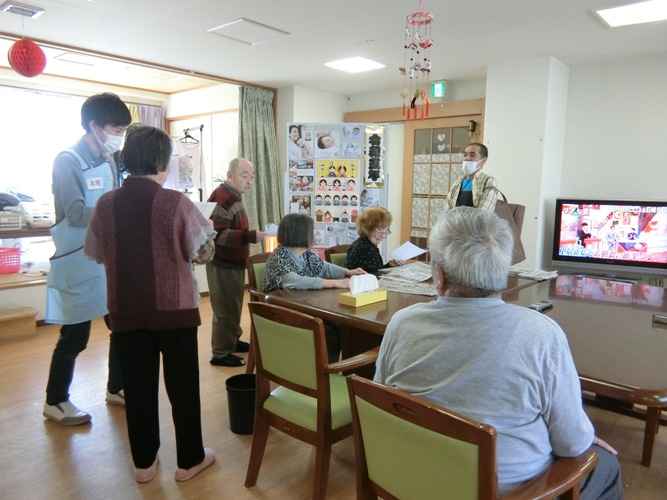 ひなまつりボードをお持ちしてみんなでひなまつりの歌の合唱会です。