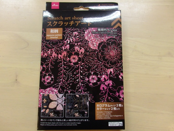 黒いシートを専用の竹ペンを使って削ると下から色があらわれて美しい絵になるというものです。